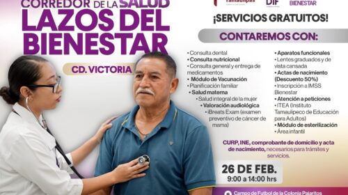 DIF Tamaulipas invita a las familias de Victoria a participar en los Corredores de la Salud “Lazos del Bienestar”