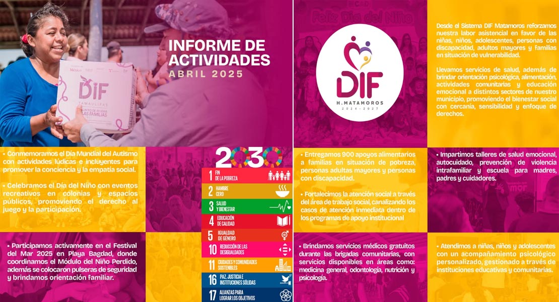 H. Matamoros, Tamaulipas.- El Gobierno de Matamoros, que encabeza Beto Granados, informó que el Sistema DIF Matamoros intensificó su trabajo en abril para beneficiar a quienes más lo necesitan. Durante este mes, se acercaron servicios esenciales a niñas, niños, adolescentes, personas con discapacidad, adultos mayores y familias en situación de vulnerabilidad. A través de brigadas y talleres, se promovió el bienestar integral de la comunidad, con un enfoque humano y sensible. Los servicios incluyeron atención médica, orientación emocional y apoyos alimentarios, entre otros. Estas acciones buscan mejorar la calidad de…