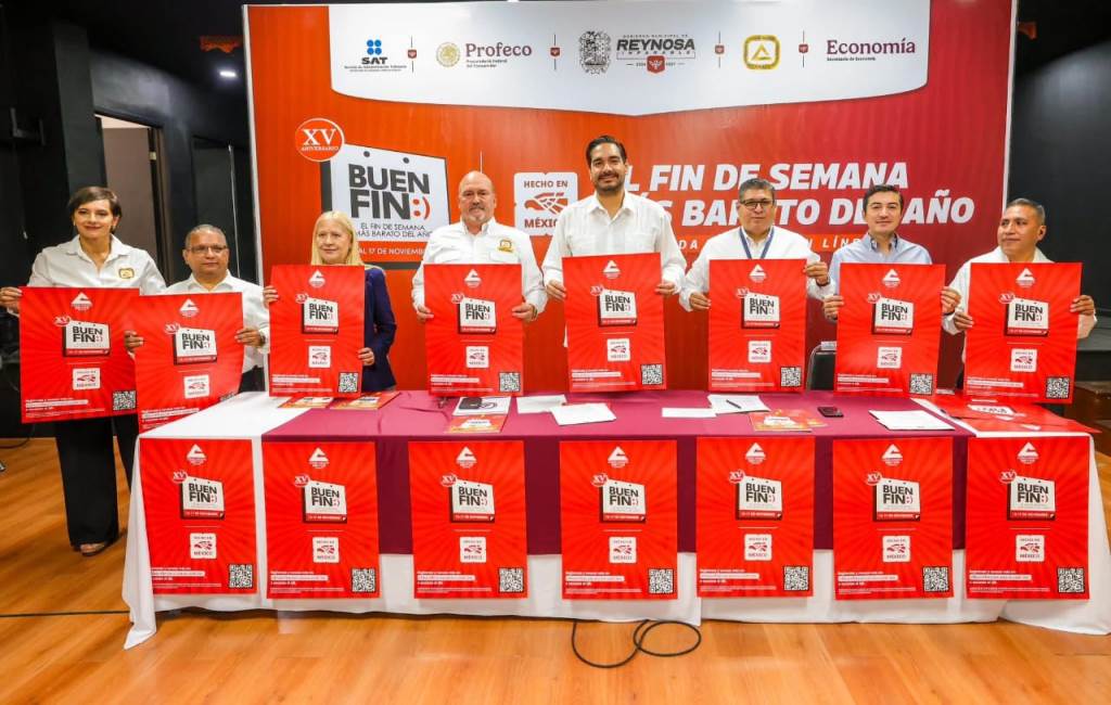 Reynosa, Tam.- El Alcalde Carlos Peña Ortiz, acompañado por el Presidente de la Cámara Nacional de Comercio, Servicios, y Turismo de Reynosa, Gildardo López Hinojosa, y por el Director Regional de la Profeco, José Luis Márquez Sánchez, anunció en rueda de prensa la campaña “El Buen Fin 2025”, el Fin de Semana más Barato del Año en Tienda o por Internet, del 13 al 17 de noviembre. Carlos Peña Ortiz aseguró que: “siempre damos prioridad al Buen Fin porque buscamos mejorar los comercios locales, ofrecer los mejores descuentos, y gracias…