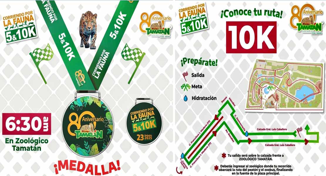 Terminó la espera; este domingo 23 de noviembre, la cita es en el Zoológico Tamatán. Conoce las rutas de 5 y 10 kilómetros Ciudad Victoria, Tamaulipas.- Este domingo, “Corre por la Fauna” comienza a las 6 de la mañana en el emblemático Zoológico Tamatán de Ciudad Victoria, informó Eduardo Rocha Orozco, vocal de la Comisión de Parques y Biodiversidad de Tamaulipas (CPBT). Destacó que, en el marco del 80 aniversario del zoológico, este domingo 23 de noviembre tendrán una carrera especial de 5 y 10 kilómetros en uno de los…