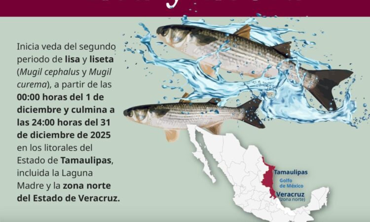 Por Enrique Jonguitud Ciudad Victoria, Tam.- A las 24 horas del próximo 31 de diciembre concluirá el segundo periodo de veda de lisa y liseta en los litorales de Tamaulipas, incluyendo las aguas de la Laguna Madre y las zonas marítimas de San Fernando, Matamoros y Soto la Marina. La Comisión Nacional de Acuacultura y Pesca informó que con esta fecha termina la restricción temporal para dos especies de alta demanda comercial en la entidad, cuya captura representa una de las principales actividades económicas para comunidades ribereñas. El periodo de…