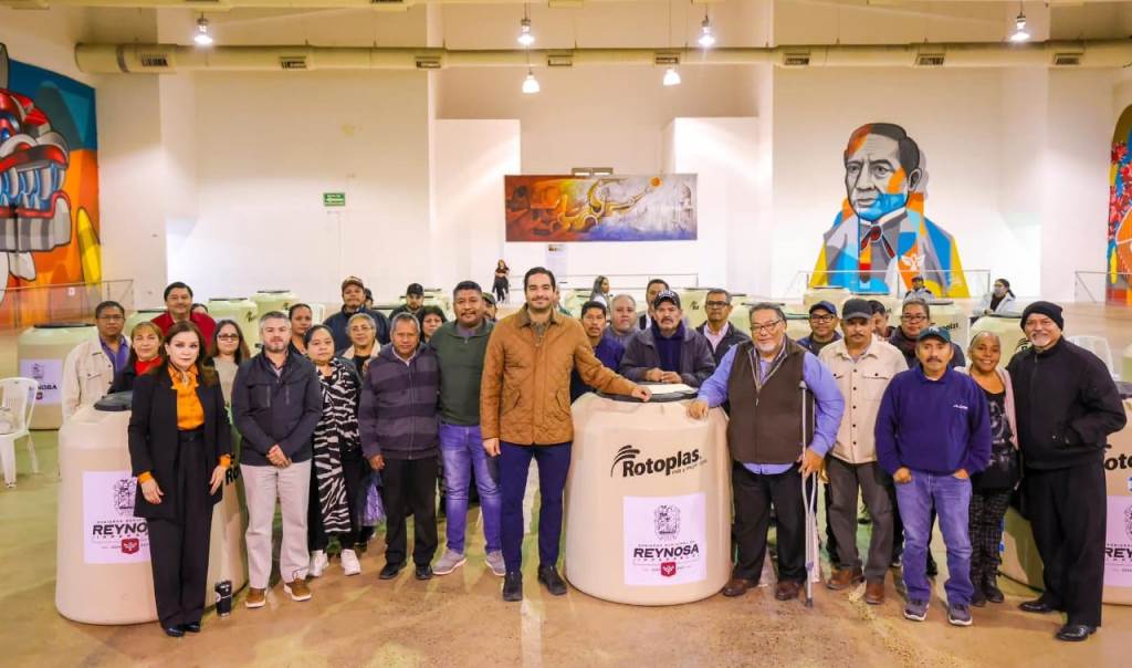 Reynosa, Tam.- Mediante un programa de apoyo a la comunidad, el Presidente Municipal Carlos Peña Ortiz, hizo entrega de gratuita de Tinacos, depósitos para el almacenamiento de agua potable, con la finalidad de mejorar la infraestructura hidtraulica de centros de reunión a los que acuden ciudadanos en busca de apoyo espiritual, cumpliendo estos, una labor importante a favor de las familias vulnerables. Los depósitos fueron recibidos por representantes de comunidades que predican por el amor al prójimo, sin distinción de la condición económica de los reynosenses, labor que contribuye a…