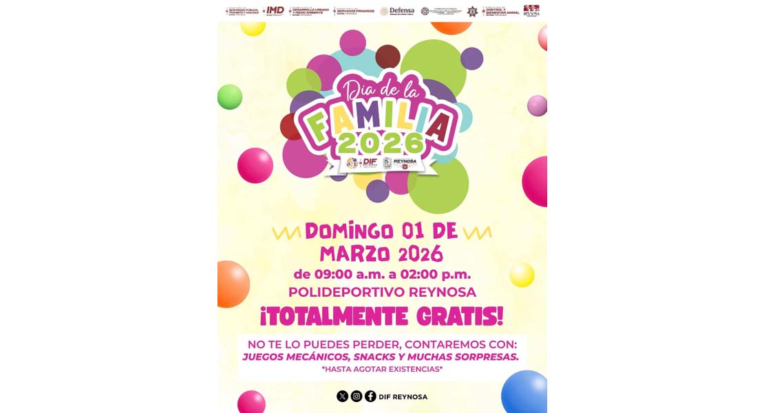 Por Juan Monserrat Castillo Molina Reynosa, Tam.- El alcalde Carlos Peña Ortiz encabezó la celebración del Día de la Familia en Reynosa, evento organizado a través del DIF municipal que reunió a cientos de familias en el Polideportivo Reynosa en un ambiente de convivencia y recreación. Durante la jornada dominical, niñas, niños y adultos disfrutaron de juegos mecánicos, actividades infantiles, snacks y diversas sorpresas preparadas para fomentar la unión familiar. En su mensaje, el presidente municipal destacó la importancia de la familia como eje central del desarrollo social y reiteró…