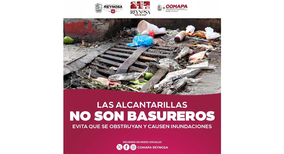 Reynosa, Tam.- La Comisión Municipal de Agua Potable y Alcantarillado de Reynosa hace un llamado a la ciudadanía a evitar arrojar basura, plásticos, grasas y otros desechos en la vía pública y en las alcantarillas. Estas prácticas provocan obstrucciones en la red de drenaje sanitario, lo que puede generar encharcamientos, fugas de aguas residuales e incluso inundaciones que afectan a las familias de distintos sectores de la ciudad. El organismo recuerda que los desechos sólidos, como bolsas, envases, restos de comida y otros residuos, impiden el correcto funcionamiento del sistema…