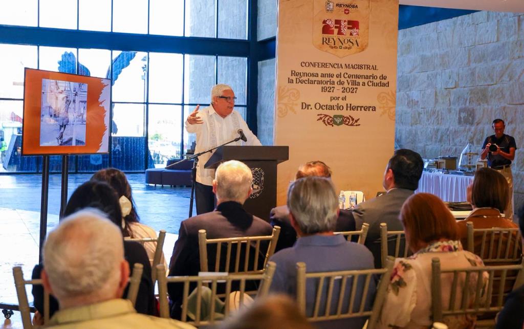 Reynosa, Tam.- El Gobierno del Presidente Municipal Carlos Peña Ortiz celebró la Conferencia Magistral del Dr. Octavio Herrera Pérez, “Reynosa ante el Centenario de la Declaratoria de Villa a Ciudad, 1927-2007”, que tuvo como escenario el Museo del Ferrocarril, Historia, Arte y Maquila, MUFHAM, donde el Alcalde fue representado por el Secretario del Ayuntamiento, Antonio Joaquín de León Villareal. En una amena charla, dentro de las celebraciones del 277 Aniversario de la Fundación de Reynosa, transcurrió el recorrido histórico de los inicios de la ciudad, su traslado de la antigua…