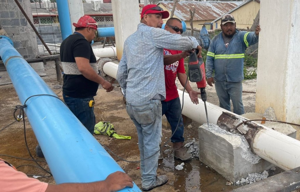 Reynosa, Tam.- Por instrucciones del Presidente Municipal, Carlos Peña Ortiz, y como parte del compromiso con el fortalecimiento de la infraestructura hidráulica, la Comisión Municipal de Agua Potable y Alcantarillado de Reynosa llevó a cabo y concluyó los trabajos de sustitución del manifold de 12 pulgadas en la cisterna y el tanque elevado del rebombeo ubicado en la colonia Riveras del Carmen.