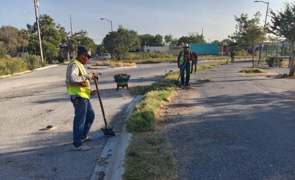 – Limpieza en la calle 5 de Febrero, con Calle 16 en la colonia Longoria, que incluyó corte de maleza, raspado y barrido.