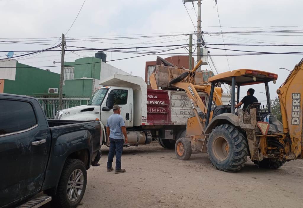 Reynosa, Tam.- Bajo la dirección del Alcalde, Carlos Peña Ortiz las dependencias municipales continúan ejecutando trabajos de desazolve, limpieza y descacharrización, en diferentes sectores de la ciudad para dar una solución rápida a los problemas derivados de le emergencia que causó la lluvia.