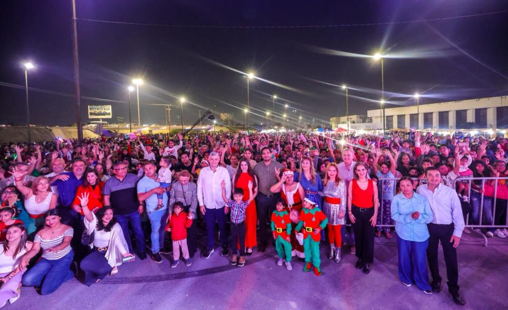 Reynosa, Tam.- El Alcalde Carlos Peña Ortiz dio la bienvenida en el Polideportivo al Desfile Navideño Reynosa 2025 de Coca-Cola Arca Continental que fue apreciado por miles de reynosenses; estuvo acompañado por su esposa Alejandra Yelitza Garza, por la Senadora de la República, Maki Esther Ortiz Domínguez, por el Presidente del Patronato del DIF, Carlos Luis Peña Garza y miles de niños, jóvenes y adultos.