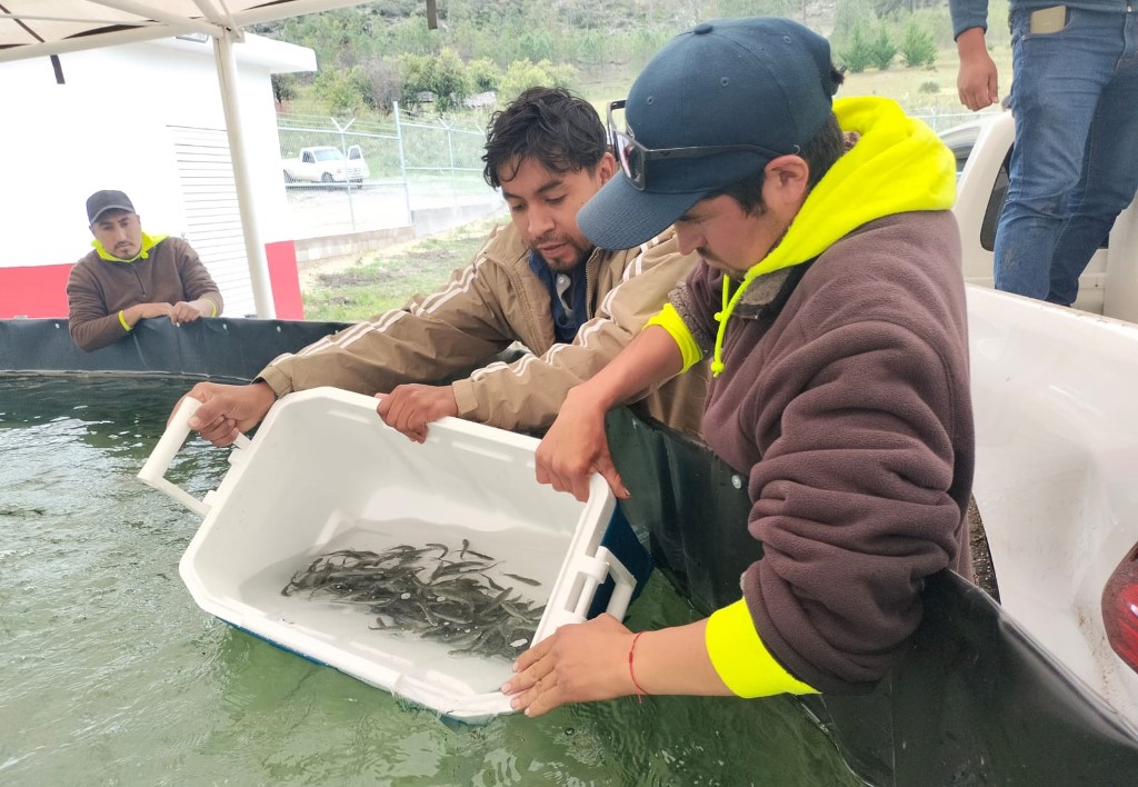 Miquihuana, Tamaulipas.- En atención a uno de los compromisos del gobernador Américo Villarreal Anaya, la Secretaría de Desarrollo Rural, Pesca y Acuacultura, a través del trabajo del personal técnico especializado de la Subsecretaría de Pesca y Acuacultura, dio inicio al proyecto acuícola en la comunidad de Valle Hermoso, Municipio de Miquihuana, con la siembra de mil 700 alevines de trucha pinta, provenientes del estado de Michoacán.