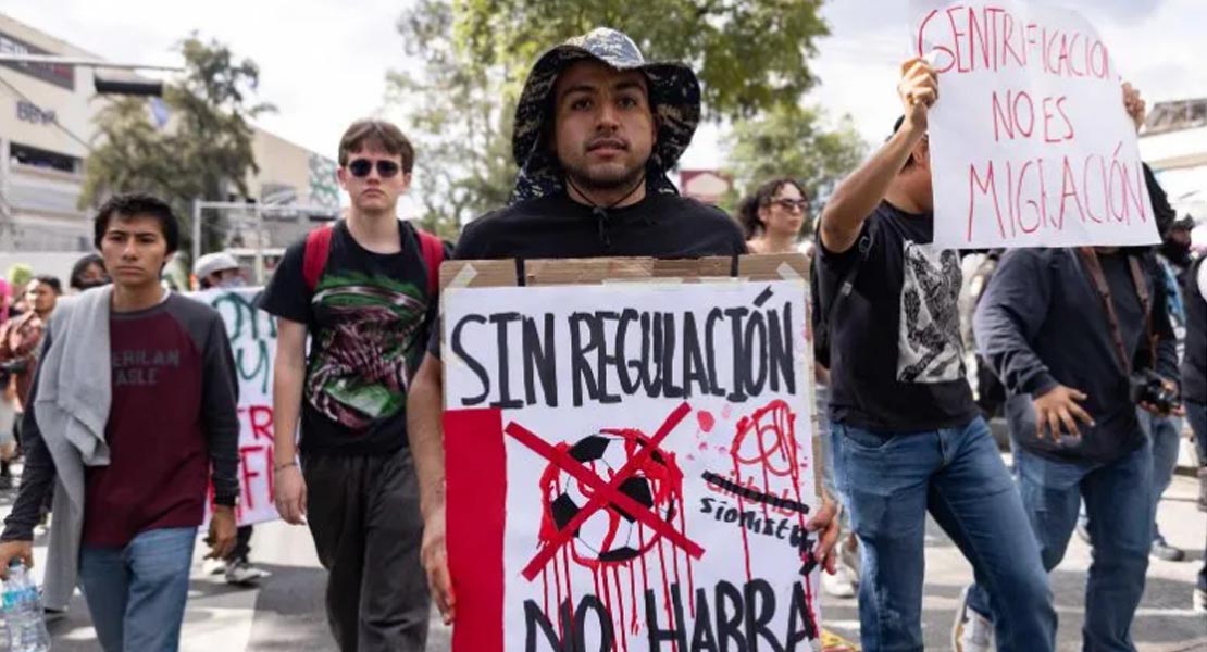 En ese punto, los organizadores exigieron poner un alto a la gentrificación: “Megaproyectos es el nuevo nombre del despojo”, “La gentrificación es lucha de clases”, “¡Vecino callado, será gentrificado!”. También hubo espacio para otras consignas como las 40 horas laborales.