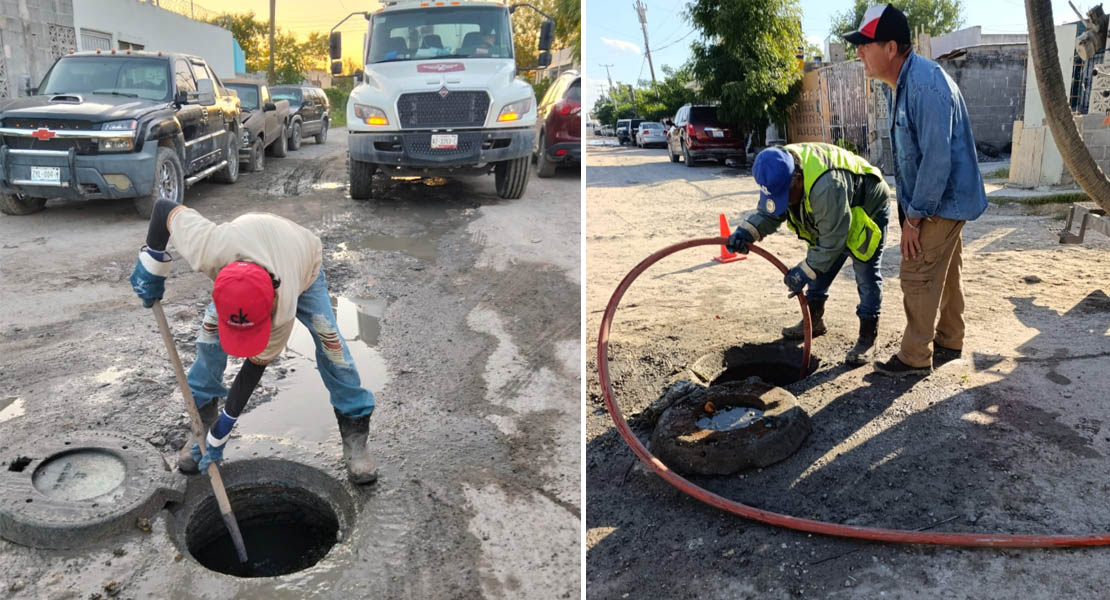 Reynosa, Tam.- Por instrucciones del Alcalde, Carlos Peña Ortiz, la COMAPA Reynosa, a través de la Coordinación de Aguas Residuales, atendió reportes de los usuarios y llevó a cabo trabajos de sondeo en la línea general y limpieza de pozos de visita en diferentes puntos de la colonia Villa Esmeralda, con el objetivo de mantener en óptimas condiciones la red sanitaria y evitar encharcamientos o fugas de agua residual.
