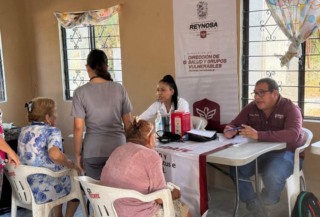 Reynosa, Tam.- Las Direcciones de Desarrollo Rural, y de Salud y Grupos Vulnerables llevaron a cabo una Brigada Médica en el ejido Las Anacuas, enviada por el Presidente Municipal Carlos Peña Ortiz para atender necesidades prioritarias en la salud de la gente del campo.