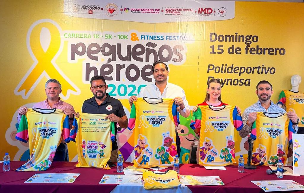 Reynosa, Tam.- El Alcalde Carlos Peña Ortiz y su esposa Alejandra Yelitza Garza dieron a conocer, acompañados por Jorge Mar Gea, Presidente de la Fundación Iluminando Corazones A. C., detalles importantes de la Carrera 1K, 5K, 10K y Fitness Festival Pequeños Héroes 2026 Reynosa, a celebrarse este domingo 15 de febrero a partir de las 7:00 de la mañana en el Polideportivo.