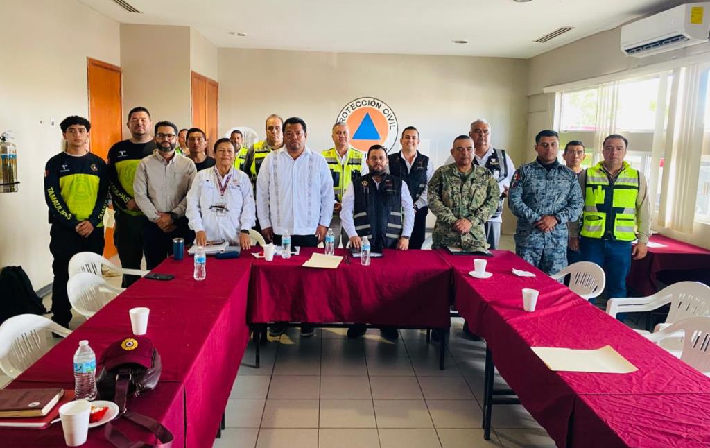 En la reunión participaron también los titulares de Protección Civil de Tampico, Ciudad Madero y Altamira, así como representantes de la Secretaría de Marina y la Guardia Nacional, quienes refrendaron su compromiso de sumar esfuerzos para prevenir riesgos y salvaguardar a la población.