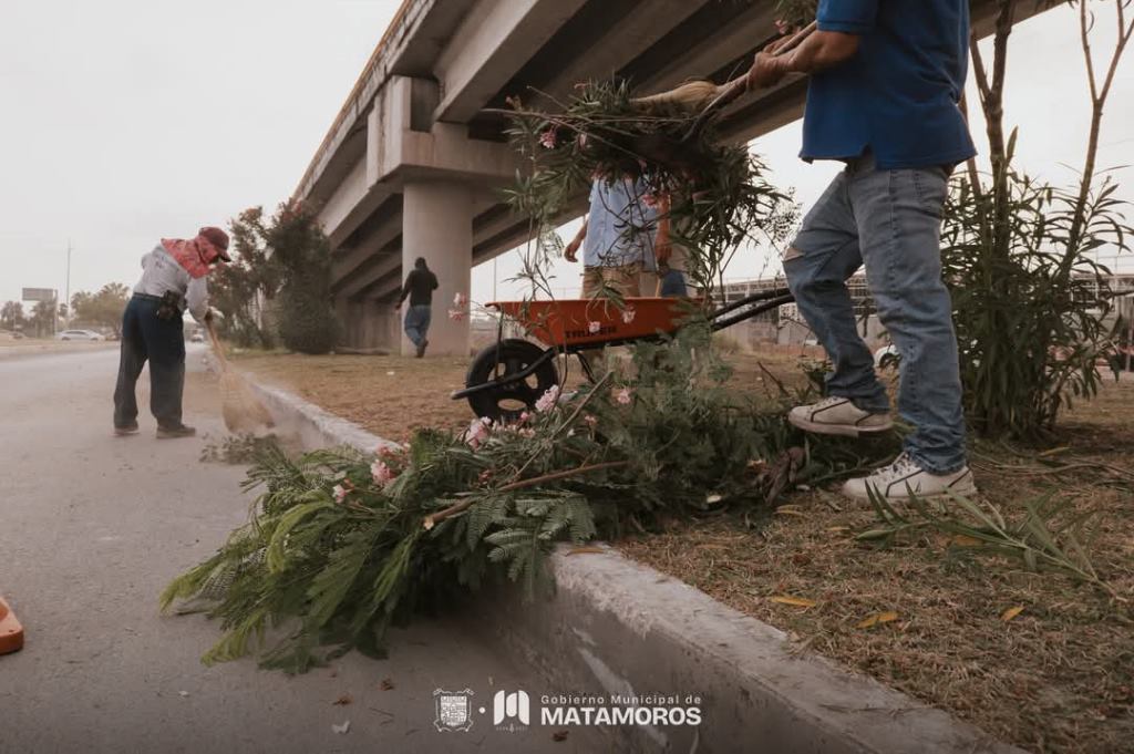 H. Matamoros, Tamaulipas.- El Gobierno Municipal, a través del departamento de espacios públicos, continúa realizando acciones contundentes para mejorar la imagen urbana y garantizar entornos saludables y seguros para todas las familias de Matamoros. Durante esta jornada, cuadrillas municipales llevaron a cabo labores de limpieza, desmonte, recolección de desechos, mantenimiento de áreas verdes y rehabilitación de espacios comunes en diversos sectores de la ciudad.