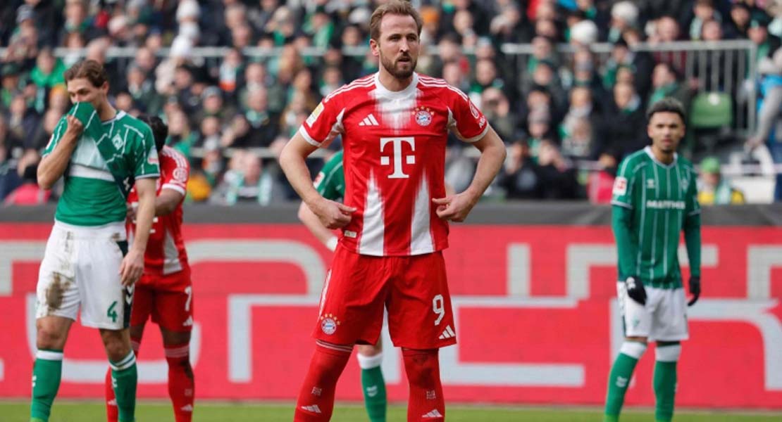 En Bremen, el habitual Harry Kane acudió a su cita con el gol, y lo hizo por partida doble, un penal imparable y un disparo que tocó en el poste tras una jugada en la que participó el colombiano Luis Díaz, ambos goles antes de la primera media hora de partido.