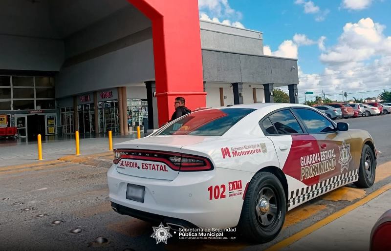 H. Matamoros, Tamaulipas.- Atendiendo las instrucciones del alcalde Beto Granados, elementos de la policía de proximidad realizan rondines preventivos en distintos centros comerciales de la ciudad, como parte del operativo especial de seguridad implementado con motivo del “Buen Fin”.
