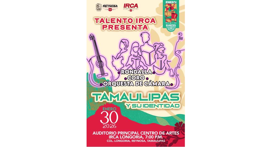 Reynosa, Tam.- El Gobierno de Reynosa, que preside el Alcalde Carlos Peña Ortiz, invita al público a disfrutar de manera gratuita este 30 de enero de “Tamaulipas y su identidad” a las 7:00 P. M. en el Auditorio Principal del Instituto Reynosense para la Cultura y las Artes. En el marco del Mes de las Raíces Tamaulipas, el evento destacará el talento local con la participación de la Rondalla Infantil del IRCA, que interpretará la emblemática pieza “El cuerudo tamaulipeco”, para después sumarse a la Rondalla Juvenil y entonar el…