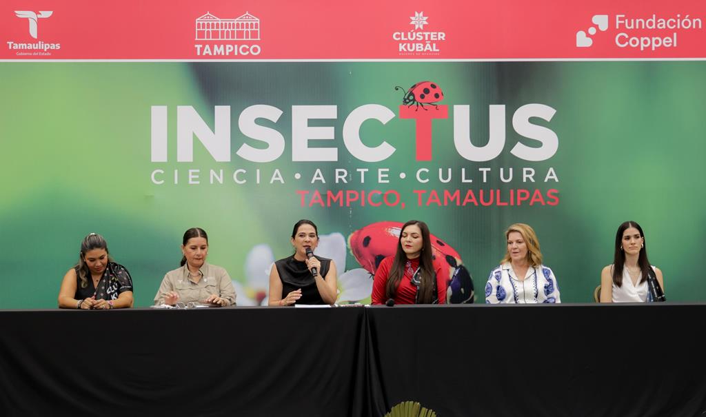 La exposición única en su género permitirá apreciar en detalle las texturas, colores y formas de los insectos, resaltando su valor en el ámbito científico y artístico. Tampico, Tam.- La Presidenta Municipal, Mónica Villarreal Anaya, anunció en rueda de prensa el lanzamiento de la exposición Insectus: Ciencia, Arte y Cultura, un innovador evento que se desarrollará en el Jardín de las Artes del Espacio Cultural Metropolitano (METRO), del 25 de mayo al 22 de junio de este año, en coordinación con Fundación Coppel y Clúster Kubál. La Alcaldesa de Tampico…