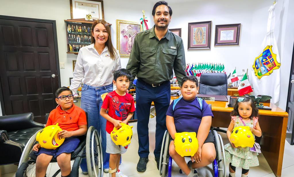 En la oficina principal del Ayuntamiento, el Alcalde recibió a los niños y niñas que representan al Teleton en esta ciudad, a quienes depositó en sus ánforas su donativo y el que hizo a nombre del Gobierno Municipal, contribuyendo a la causa para que más personas sean beneficiadas con las rehabilitaciones que se llevan a cabo en los CRI, Centro de Rehabilitación Integral.