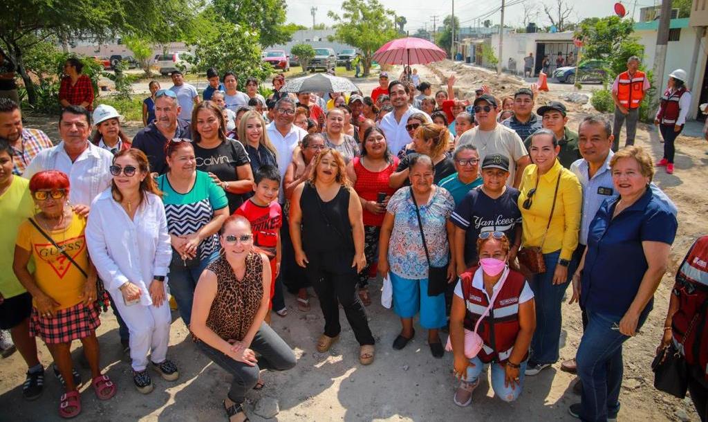 Junto a regidores y funcionarios municipales, el Alcalde supervisó el avance del trabajo que incluye drenaje sanitario de 12 pulgadas, guarniciones, banquetas, tomas domiciliarias, descargas sanitarias, pozos de visita y los 3 mil metros de pavimento hidráulico.