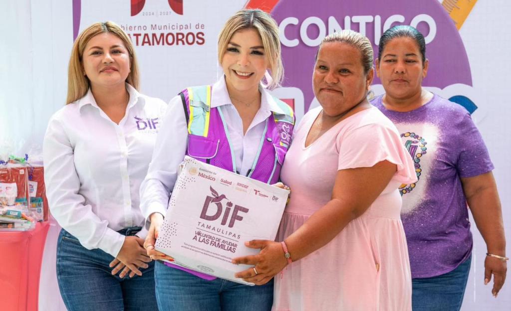 Matamoros, Tam.- El Sistema DIF Matamoros que preside la Lic. Ana Ariceaga de Granados, en coordinación con el Sistema DIF Tamaulipas, continúan acercando apoyos a las familias que habitan en sectores de la periferia de la ciudad.