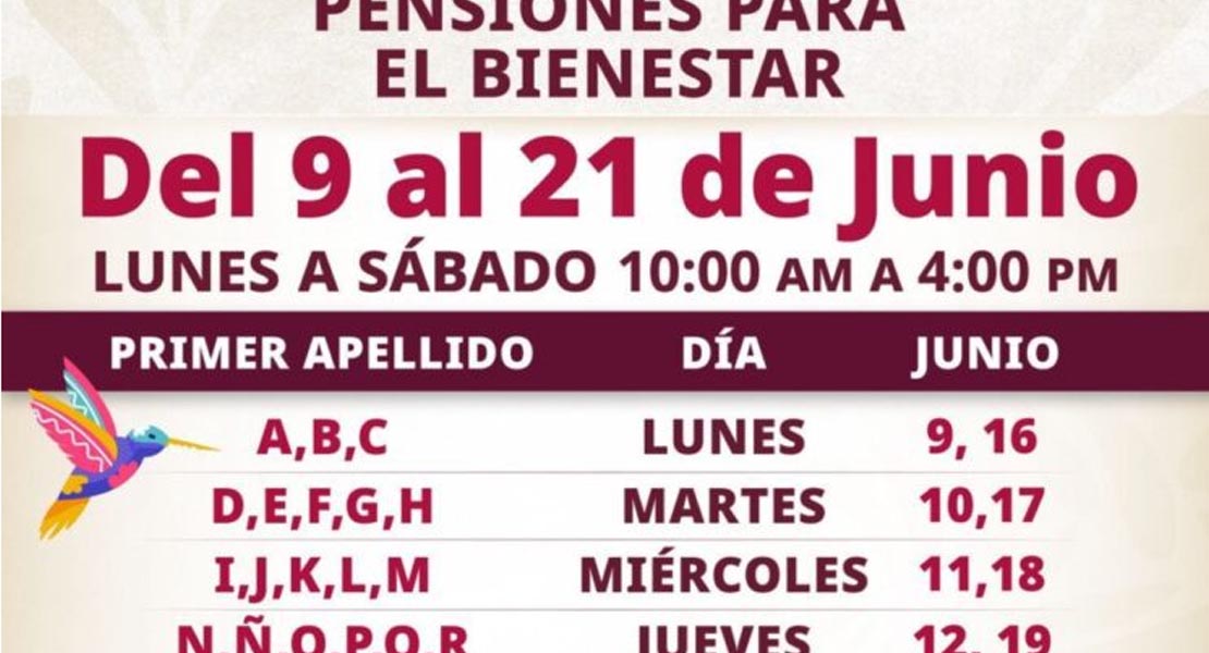 para Adultos Mayores del 9 al 21 de junio en cualquier delegación de Bienestar del Estado.
