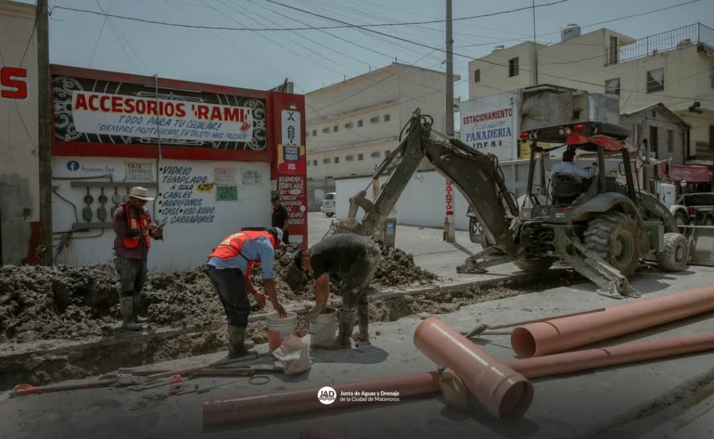 H. Matamoros, Tamaulipas.- El Gobierno Municipal, a través de las cuadrillas de la Junta de Aguas y Drenaje (JAD), continúa con los esfuerzos para mejorar la infraestructura urbana en la zona centro de la ciudad. Este jueves se llevó a cabo la colocación de tubería de 12 pulgadas para drenaje sanitario sobre la calle 11, entre las calles Morelos y González.