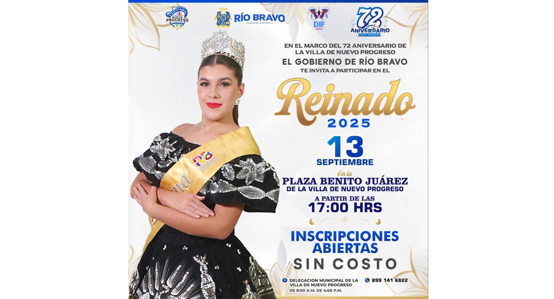En el marco del 72 Aniversario de la Villa de Nuevo Progreso, el Gobierno de Río Bravo te invita a disfrutar de este gran evento lleno de belleza, tradición y cultura.