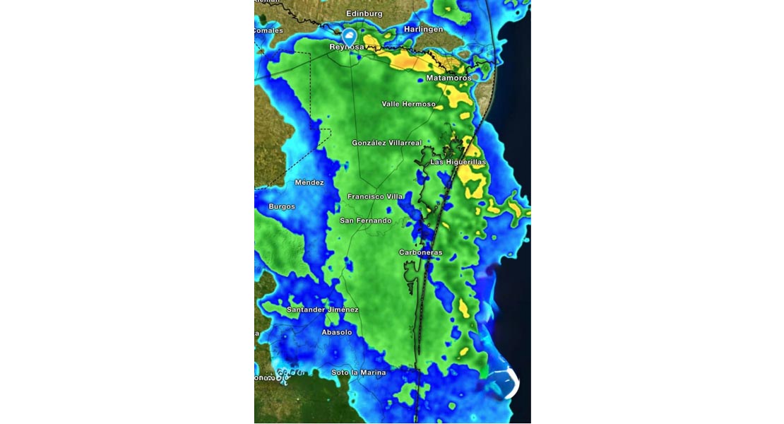 Reynosa, Tam.- El Alcalde Carlos Peña Ortiz invita a la población a estar atenta del pronóstico del clima debido a que un extenso sistema de tormentas avanza hacia la Zona Norte de Tamaulipas, con alta posibilidad de continuar generando lluvias moderadas a localmente intensas y ráfagas de viento de hasta 45 km/h.
