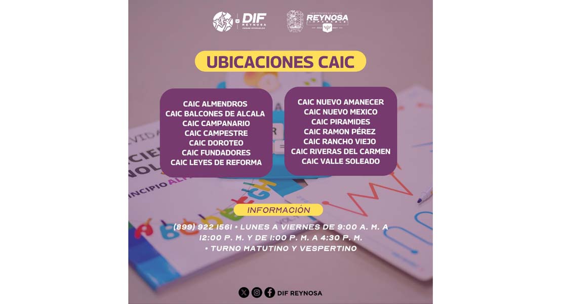 Para mayores informes, las madres y padres de familia pueden comunicarse al teléfono 8999221561 y conocer el CAIC más cercano a su domicilio.
