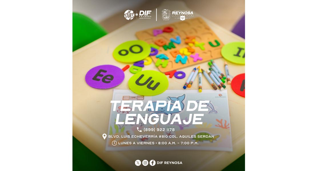 Reynosa, Tam.- El Sistema DIF Reynosa, que preside Carlos Luis Peña Garza, a través del Centro de Rehabilitación Integral, cuenta con área de terapia de lenguaje, con el objetivo de mejorar la calidad de vida de niñas, niños, adolescentes y adultos que enfrentan dificultades en el habla, el lenguaje o el aprendizaje.