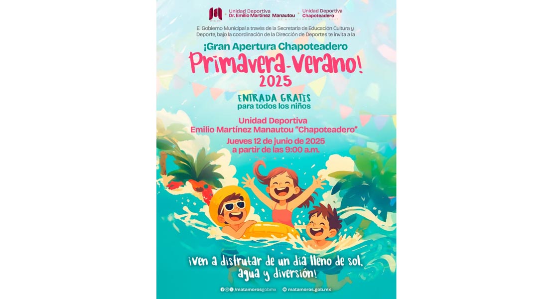 El Gobierno Municipal de Matamoros invita a la Gran Apertura del Chapoteadero Primavera-Verano 2025