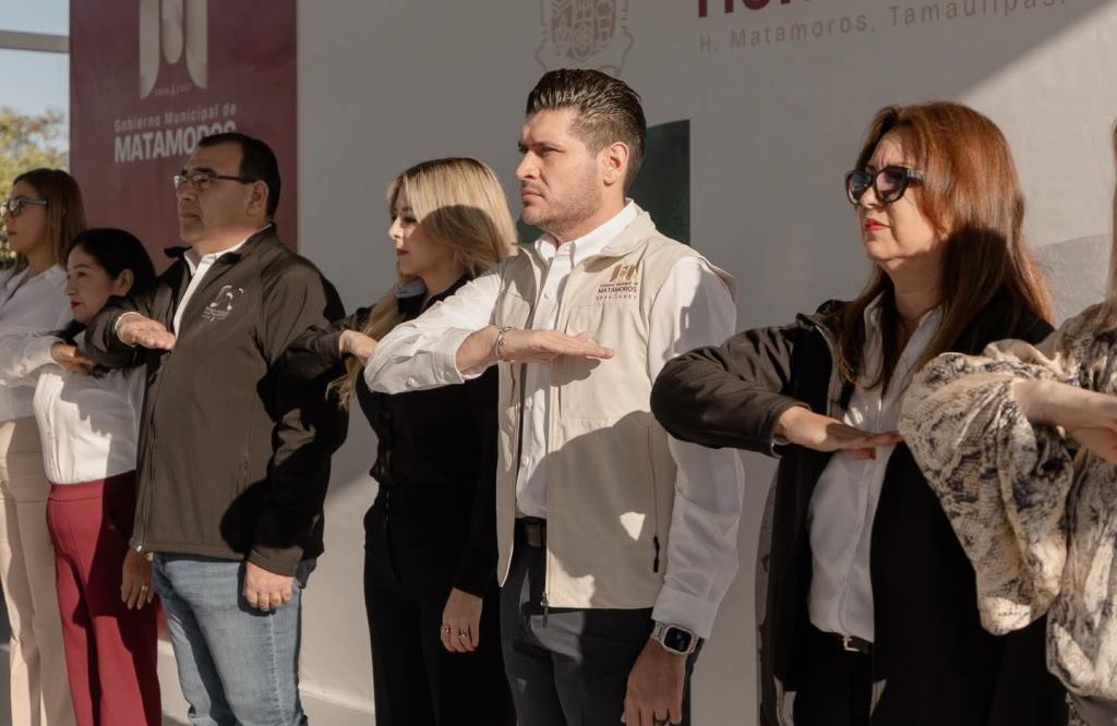 H. Matamoros, Tamaulipas.- Hoy lunes, inicio de semana, el alcalde de Matamoros, Beto Granados, encabezó la Ceremonia de Honores a la Bandera en el Centro de Atención Múltiple (CAM) Laboral “Alfonso Sánchez Sánchez”, ubicado en la colonia Los Encinos, donde además se llevó a cabo la inauguración oficial de una nueva techumbre y explanada que fortalecerán las actividades educativas, cívicas y recreativas del plantel.