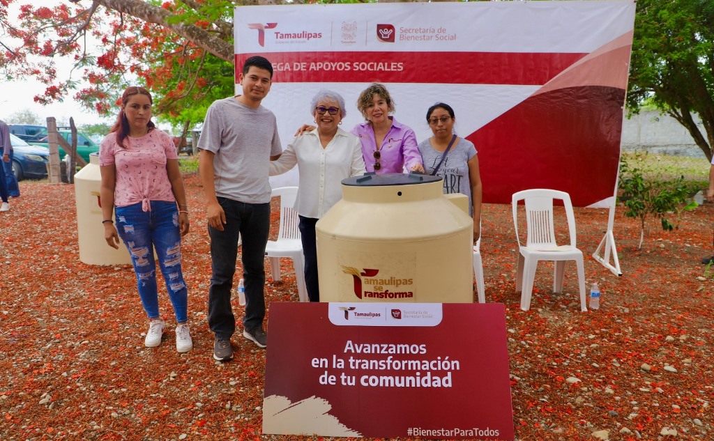 Aldama, Tamaulipas.- Con la entrega de 50 tinacos para el almacenamiento de agua en hogares de cinco ejidos del municipio de Aldama, la Secretaría de Bienestar Social (SEBIEN), da cumplimiento a la instrucción del gobernador Américo Villarreal Anaya, de atender a la población más vulnerable para contribuir a mejorar su calidad de vida.