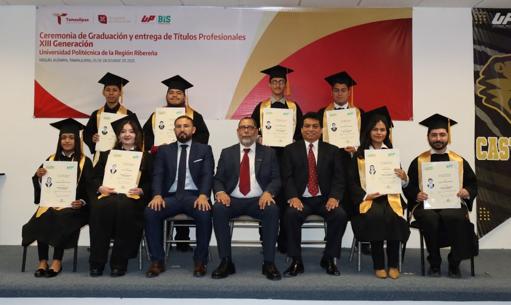 Miguel Alemán, Tamaulipas.- La Universidad Politécnica de la Región Ribereña (UPRR) entregó a la sociedad una nueva generación de profesionistas al celebrar la ceremonia de graduación de la XIII Generación 2021–2025 de los tres programas educativos que conforman la institución.