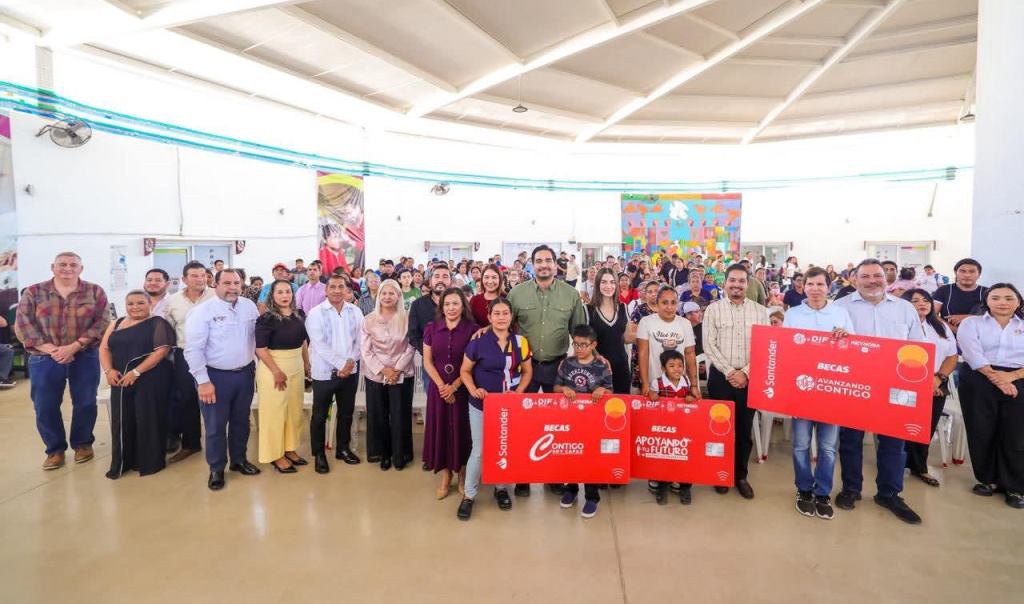Reynosa, Tam.- El Alcalde Carlos Peña Ortiz y la Presidenta del Voluntariado DIF-Reynosa, Alejandra Yelitza Garza, junto con el Presidente del Patronato, Lic. Carlos Luis Peña Garza, entregaron apoyos de alto contenido social, las Tarjetas de Becas “Contigo Soy Capaz, Apoyando Tu Futuro y Avanzando Contigo.