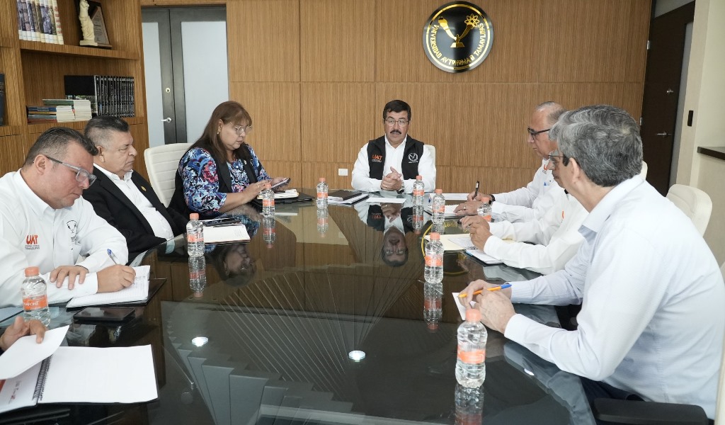 Ciudad Victoria, Tam.- Con la finalidad de evaluar los avances institucionales en los principales rubros de la Universidad Autónoma de Tamaulipas (UAT), el rector Dámaso Anaya Alvarado sostuvo una reunión con titulares de las secretarías y cuerpo directivo de la administración central de la casa de estudios.