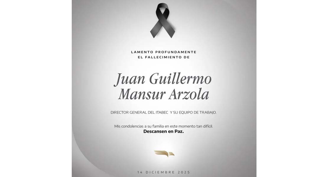 Ciudad Victoria, Tamaulipas.- El Gobierno del Estado de Tamaulipas informa el fallecimiento del director general del Instituto Tamaulipeco de Becas, Estímulos y Créditos Educativos (ITABEC), doctor Juan Guillermo Mansur Arzola, y de dos personas más en percance carretero este domingo en el Libramiento San Fernando, cuando se dirigían a cumplir tareas oficiales en el poblado Higuerillas, municipio de Matamoros.