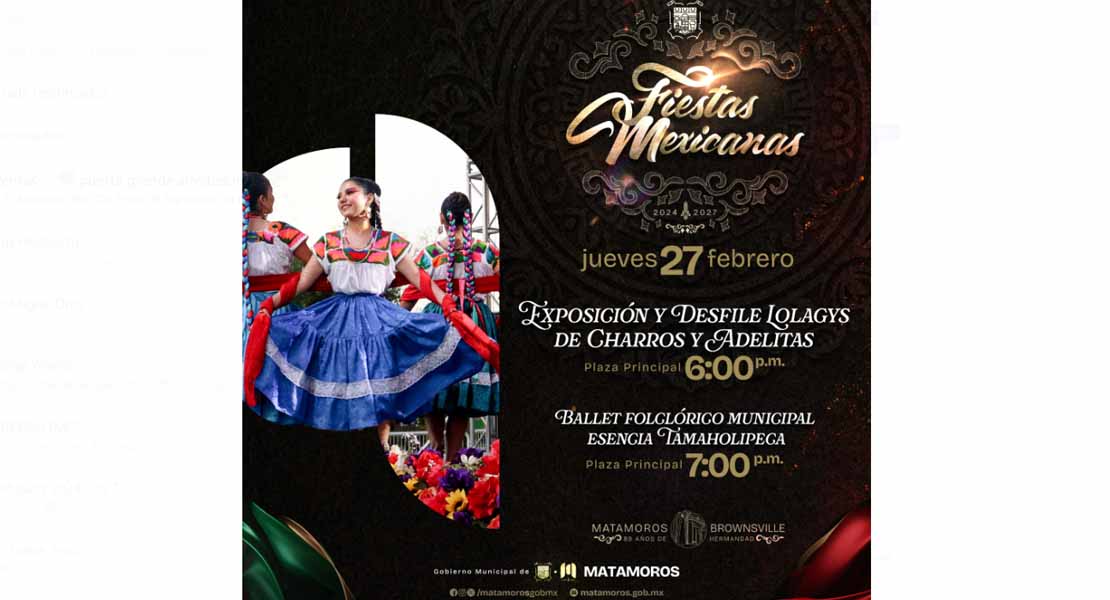 El evento se desarrolla en diversos puntos de la ciudad de Matamoros, invitando tanto a locales como a turistas a ser parte de esta gran fiesta, con actividades que van desde el tradicional desfile y el saludos binacional por la mañana de este jueves. Más tarde en la plaza principal los habitantes de Matamoros podrán disfrutar de la exposición y desfile Lolagys de charros y adelitas, así como la participación del ballet folklórico municipal “Esencia Tamaholipeca”.