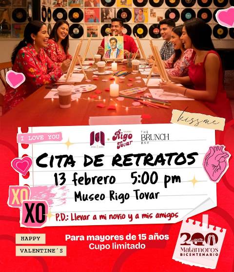 Matamoros, Tam.- El Gobierno Municipal de Matamoros, encabezado por el alcalde Beto Granados, informó que la actividad cultural “Cita de Retratos”, que se realizará el próximo 13 de febrero en el Museo Rigo Tovar, ya cuenta con cupo lleno, gracias a la excelente respuesta de la ciudadanía que se registró para participar.