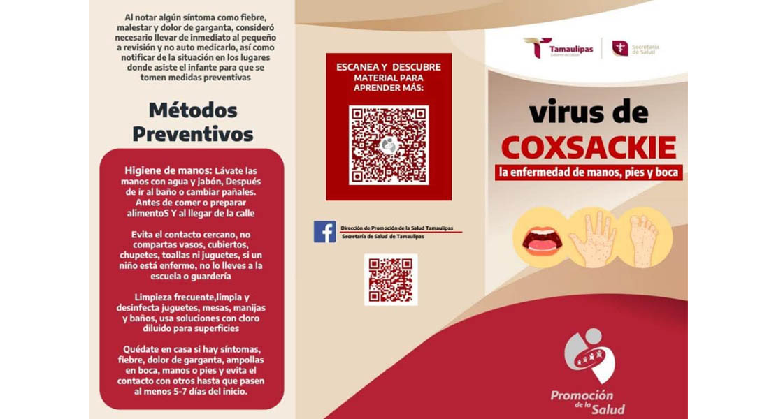 Matamoros, Tam.- El Gobierno de Matamoros que encabeza Beto Granados brindó información importante sobre el virus Coxsackie, el cual provoca la enfermedad conocida como “manos, pies y boca”. Este padecimiento afecta principalmente a niñas y niños pequeños, causando fiebre, malestar general y la aparición de llagas en la boca, manos y pies.