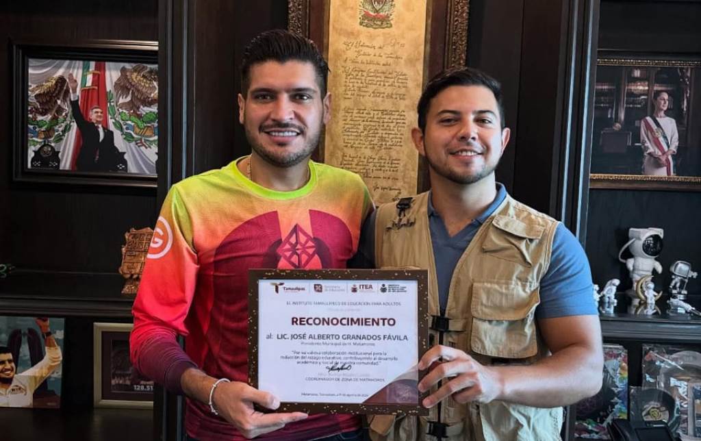 H. Matamoros, Tamaulipas.- El presidente municipal, Beto Granados, agradeció al Instituto Tamaulipeco de Educación para Adultos (ITEA), por el reconocimiento que le otorgaron, ya que refleja el esfuerzo conjunto por reducir el rezago educativo en nuestra comunidad.
