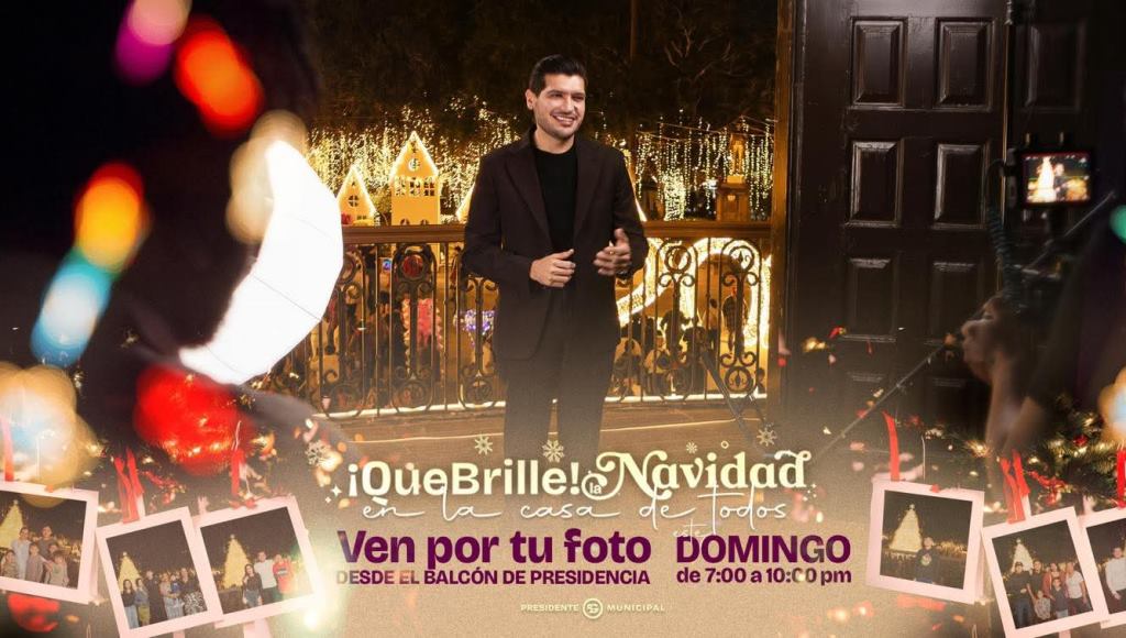 Matamoros, Tam.- El Gobierno de Beto Granados invita a las familias de Matamoros a acudir este domingo al Balcón de Presidencia, el cual permanecerá abierto de 7:00 a 10:00 p.m., para que puedan tomarse la fotografía con el pino navideño y disfrutar de la plaza principal iluminada.