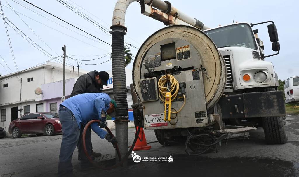 H. Matamoros, Tamaulipas.- Con el respaldo del alcalde Beto Granados, se continúan realizando acciones de limpieza y desazolve a través del camión vactor de la Junta de Aguas y Drenajes, en distintos sectores de la ciudad, con el objetivo de mejorar el funcionamiento de la red de drenaje y prevenir afectaciones a las familias.