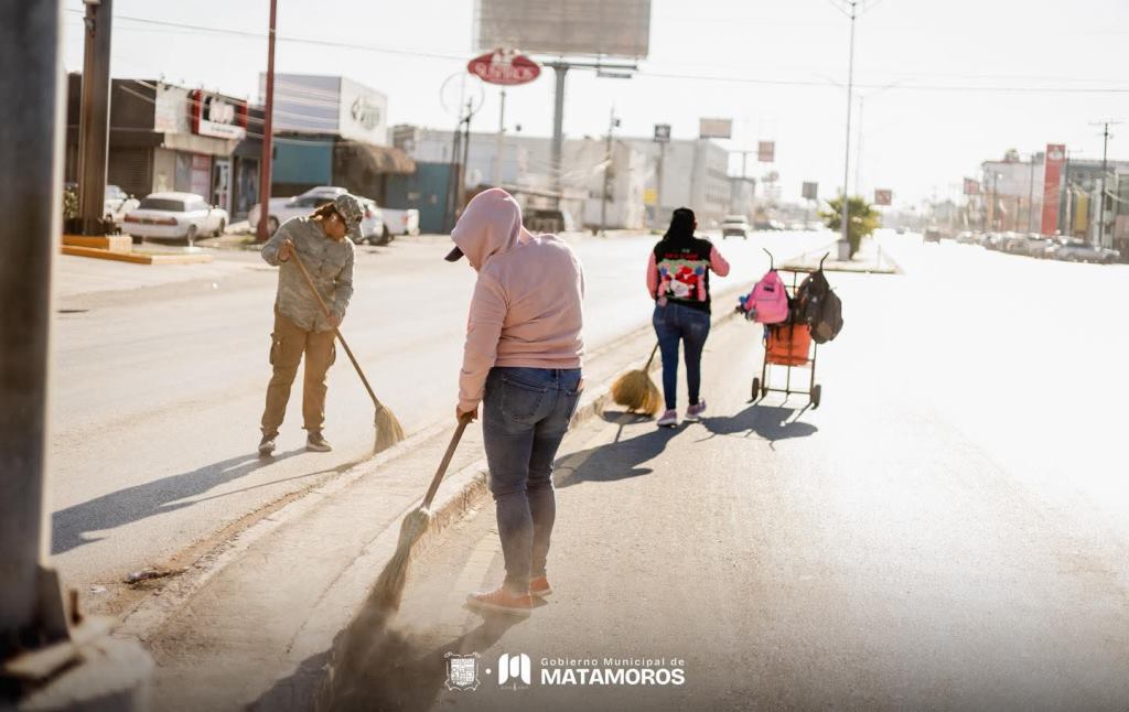 Las labores se desarrollaron en puntos estratégicos como la calle Diecisiete, las avenidas Cantinflas y Lauro Villar, así como en las colonias Guadalupe Mainero y España, además del Fraccionamiento Valle de Casablanca, el Bordo del Río y la Carretera a Puerto Mezquital, contribuyendo a que brille Matamoros a través de entornos más ordenados y dignos.