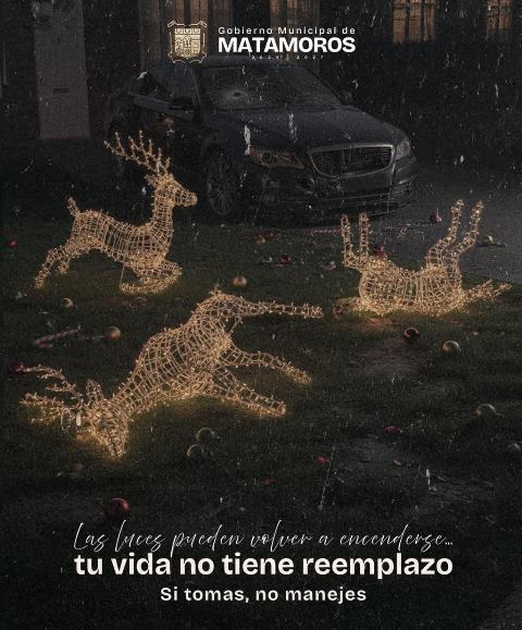 Matamoros, Tam.- En el marco de las celebraciones decembrinas, el Gobierno de Beto Granados exhorta a la ciudadanía a actuar con responsabilidad y conciencia al conducir, recordando que, aunque las luces y los adornos llenan de vida la ciudad, una vida humana no tiene reemplazo y debe ser siempre la prioridad.