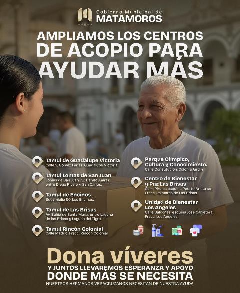 Gobierno de Matamoros amplía los centros de acopio en apoyo a Veracruz