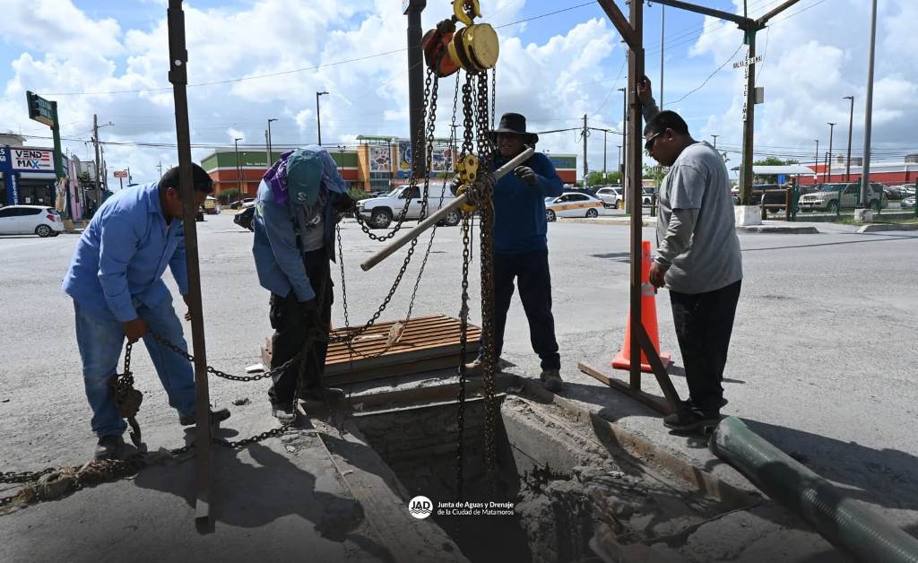 H. Matamoros, Tamaulipas.- El gobierno municipal de Matamoros, a través de la Junta de Aguas y Drenaje, continúa trabajando por el bienestar de las familias matamorenses, realizando acciones concretas para mejorar los servicios públicos. En esta ocasión, se llevaron a cabo labores de rehabilitación en la calle Héroes del 47 y Avenida del Niño, donde se efectuó el cambio de bomba en un pozo de visita.